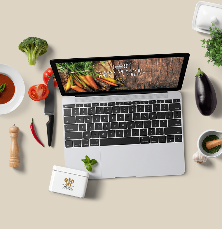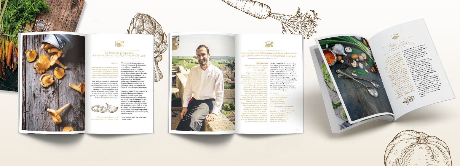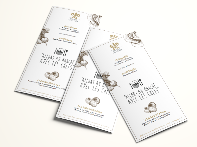 Flyer, invitations, fiches recettes des chefs, livret.